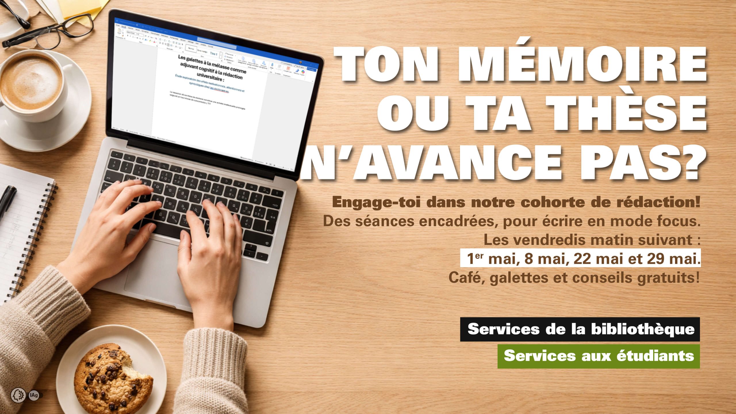 Tu as le syndrome de la page blanche, toutes les défaites sont bonnes pour éviter de t’asseoir et rédiger ton mémoire ou ta thèse, cette période d’isolement imposée par la rédaction te fait peur? Cette cohorte de rédaction est pour toi!