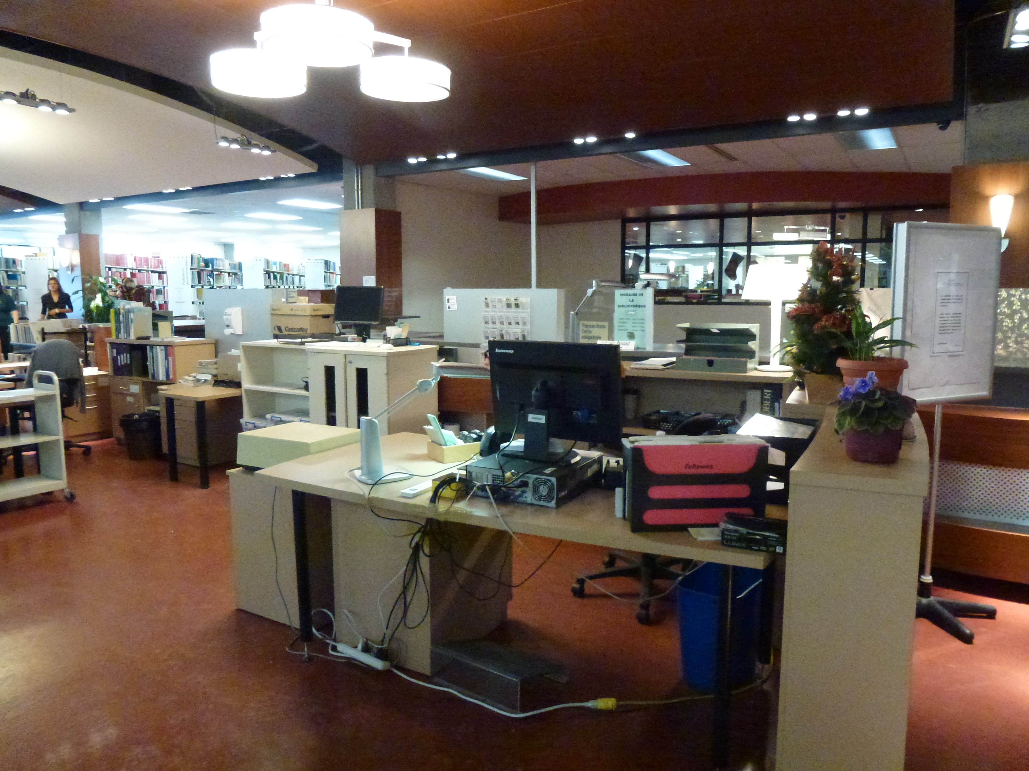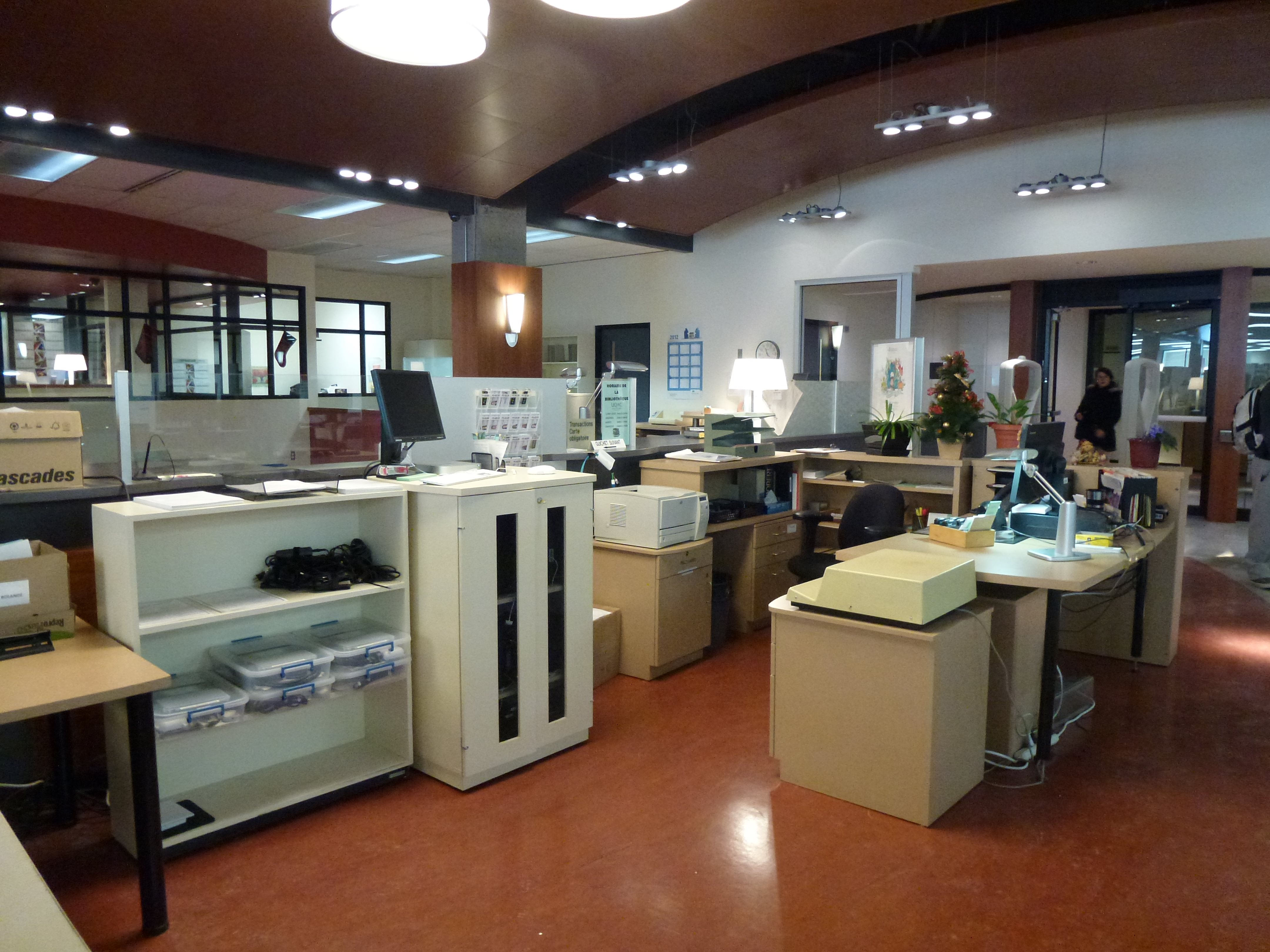 Des travaux de réaménagements ont débuté cette semaine, afin d’améliorer l’organisation du comptoir de prêt. Pendant toute la durée des travaux, le personnel du comptoir sera déménagé devant leur endroit de travail habituel. Les travaux ont débuté cette semaine et la fin est prévue pour la fin de janvier 2013.
