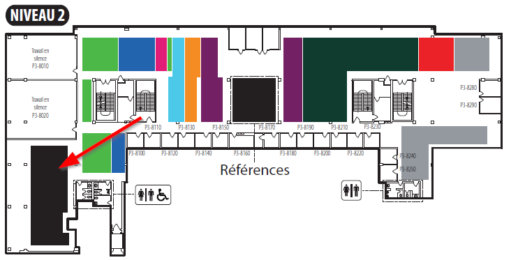 Les collections des mémoires, thèses et publications gouvernementales (cotes C/, C-Q/, C/M, etc.) ont été relocalisées au deuxième étage de la bibliothèque dans le secteur près des zones de travail en silence.