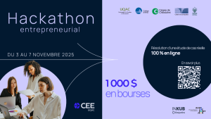 𝗣𝗼𝘂𝗿 𝘁𝗼𝘂𝘀 𝗹𝗲𝘀 𝗱𝗲́𝘁𝗮𝗶𝗹𝘀: https://ceeuqac.ca/hackathon-entrepreneurial/