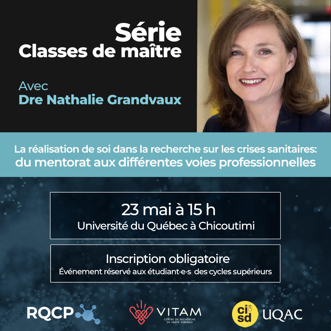Cette classe de maître sera donnée par Nathalie Grandvaux, professeure, chercheuse en virologie et directrice des affaires étudiantes et postdoctorale du CRCHUM et bien connue, autant du public que du monde académique et de la communauté étudiante, pour son engagement dans le cadre de la pandémie de COVID-19. Elle échangera avec les participantes, participants de […]