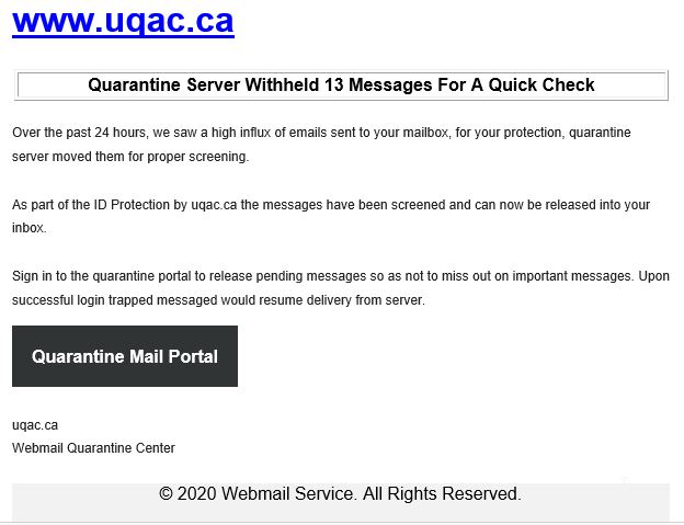 Ce message circule actuellement afin de vous faire croire qu’il s’agit de votre boite de messagerie de l’UQAC. Ne vous laissez pas prendre, supprimez ce message.