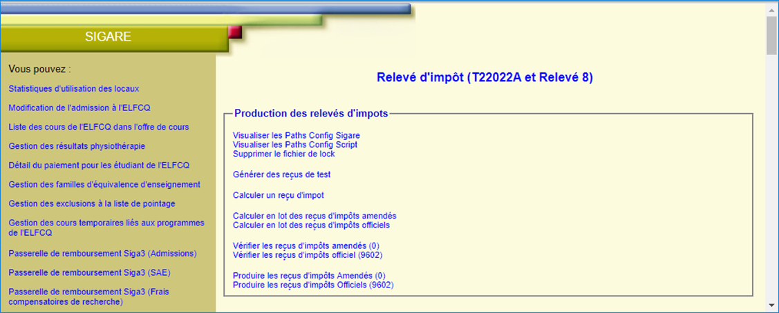 Application web utilisée : Sigare-Intranet https://wprodl.uqac.ca/sigare/ (avec le navigateur web Chrome)