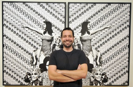 «Ce sont des pièges tendus pour accrocher la rétine. On peut apprécier les tableaux de loin, mais ressentir le besoin de s’approcher. Je voulais séduire avec les motifs pour forcer le visiteur à prendre du temps pour observer de plus près», explique l’artiste.