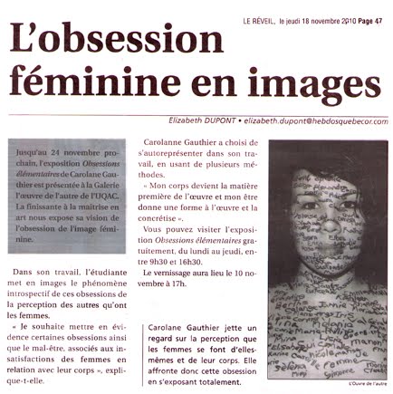 Paru aujourd’hui , un court texte d’Élizabeth Dupont, du journal Le Réveil.