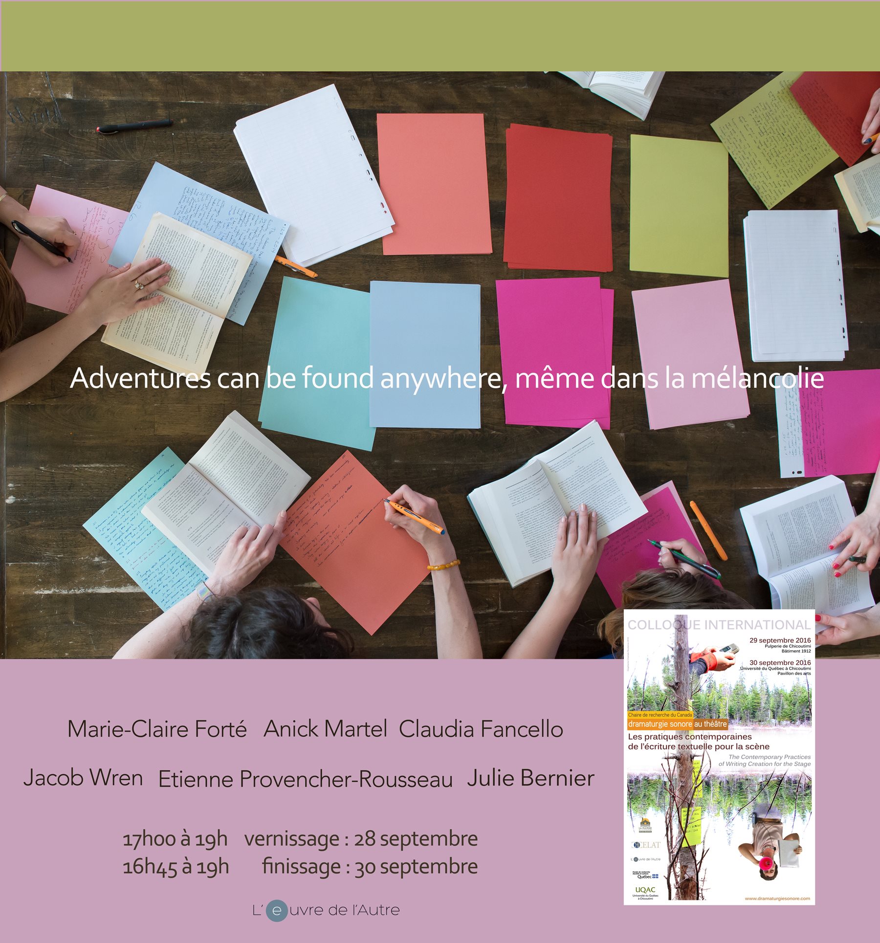 Avec Marie-Claire Forté, Jacob Wren, Julie Bernier ,Anick Martel, Étienne Provencher-Rousseau, Claudia Francello