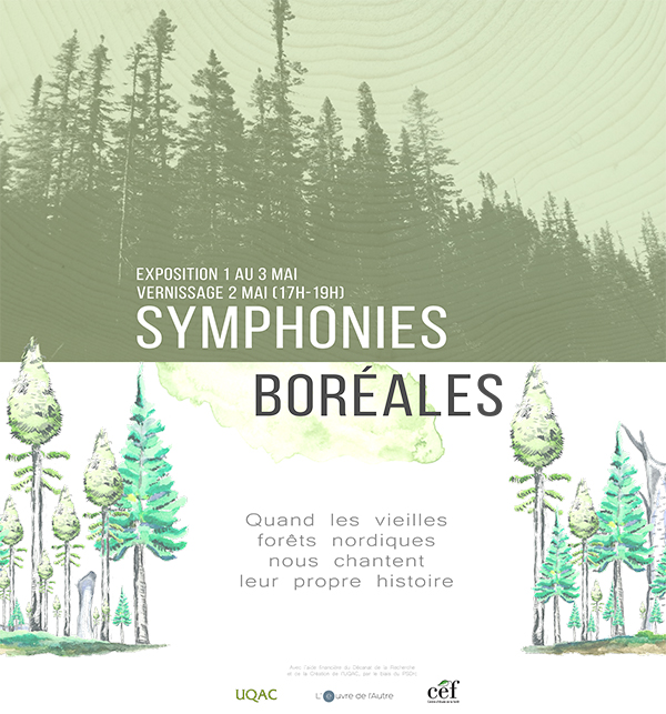 « Symphonies Boréales » est  une œuvre conciliant sciences et arts avec pour sujet les vieilles forêts boréales, un enjeu majeur de l’aménagement forestier au Saguenay Lac Saint-Jean et au Québec en général. Son originalité tient notamment dans la retranscription en musique de la croissance de plus de 750 arbres appartenant à 21 vieilles forêts, situées au nord du Lac Saint-Jean. L’œuvre ​ est le fruit de la collaboration de plusieurs étudiants et anciens étudiants des départements des arts et des lettres ou des sciences fondamentales de l’Université du Québec à Chicoutimi.