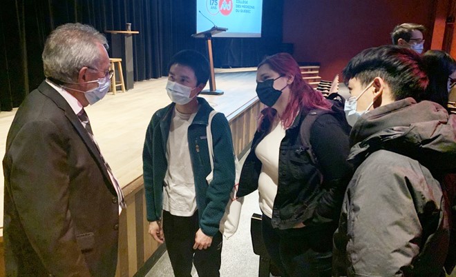 Le Dr Gaudreault s’est aussi entretenu avec les responsables de stages d’externat et de résidence du CIUSSS, avant de rencontrer les étudiantes et étudiants, devant lesquels il a prononcé une allocution pour souligner les 15 ans du PFMS. Ces futurs médecins se sont montrés préoccupés de l’accessibilité aux soins pour des groupes marginalisés.