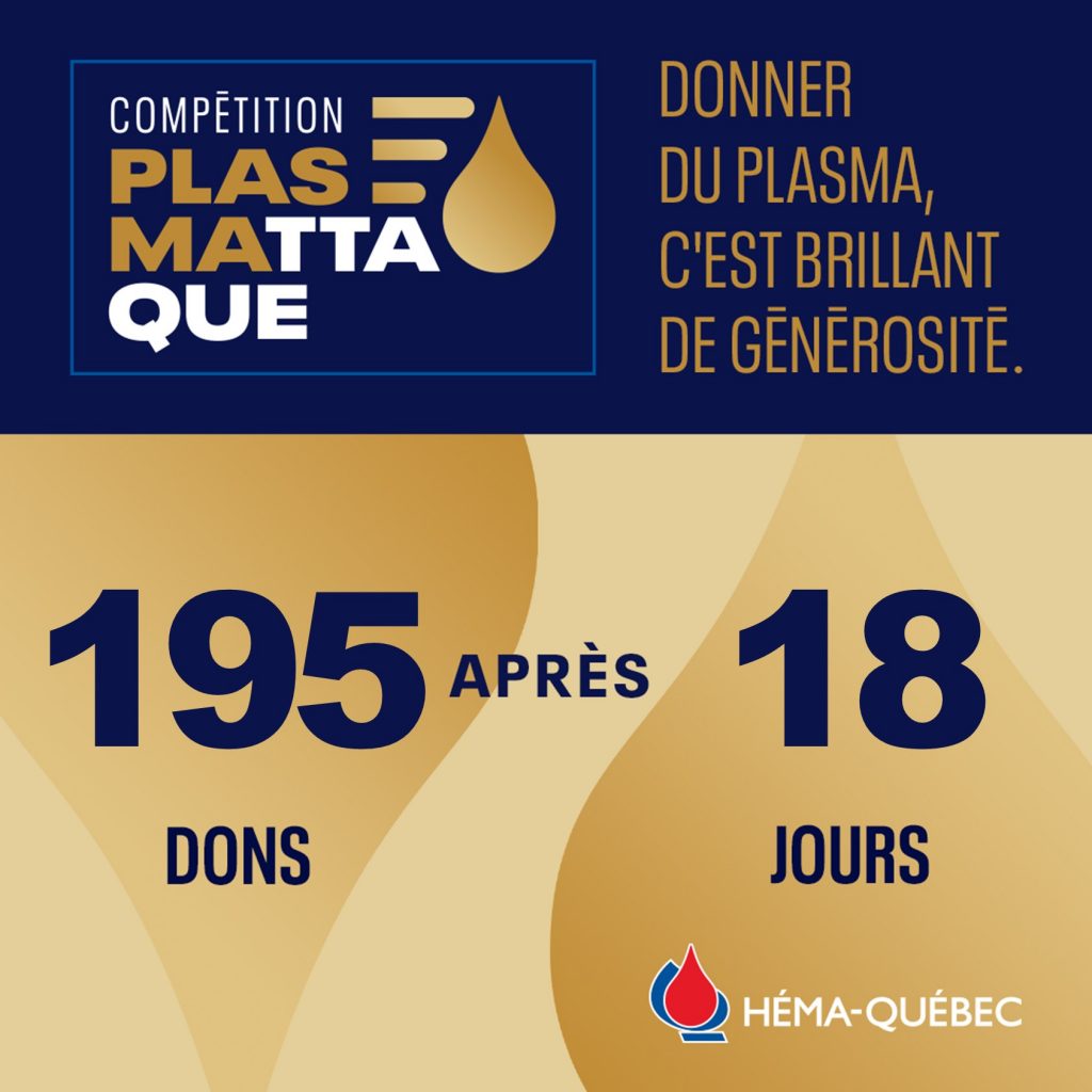 Les étudiants de la faculté de médecine au PFMS sont fiers de s’unir à Héma-Québec pour promouvoir l’importance du don de plasma dans le cadre de la Plasmattaque, conjointement à 5 autres facultés de l’Université du Québec à Chicoutimi (UQAC).