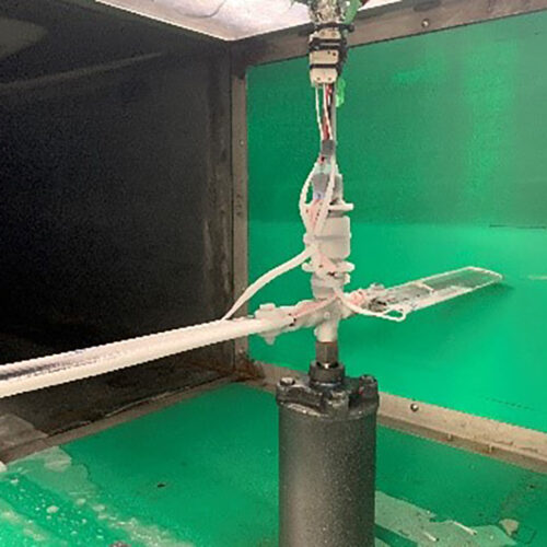 Le générateur d’embruns marin, placé en chambre climatique, est utilisé pour deux types d’essais d’accumulation de glace impliquant des gouttelettes d’eau surfondue pulvérisées sur des échantillons.