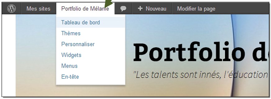 d) Cliquez sur le bouton : « Se connecter » et vous serez en mesure de modifier votre propre portfolio. - Le « Tableau de Bord », l’outil pour personnaliser votre portfolio