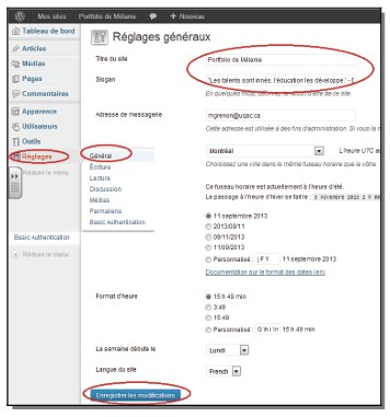 c) Modifiez le champ « Titre du site » si votre prénom et votre nom sont erronés ;