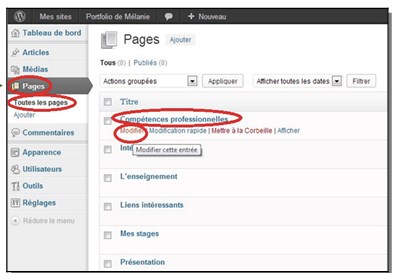 c) Positionnez la souris sur le titre de la page à modifier ;