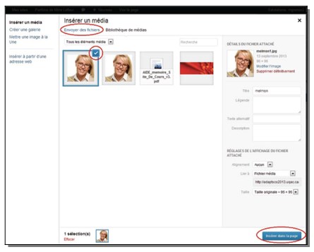 f) Cliquez ensuite sur le bouton « Insérer dans la page » (il est complètement à droite dans le bas de la page).