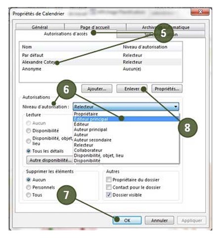 .Relecteur : permet uniquement de lire les éléments et les fichiers du calendrier. - Cliquer sur « OK »;