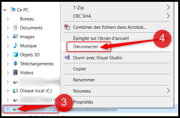 Privé Déconnecter un lecteur réseau sur un ordinateur de type PC (Windows) Ouvrir une fenêtre d’explorateur Windows; ... . Cliquer sur « Ce PC »;. Appuyer sur le bouton de droit de la souris sur le lecteur à démonter;. Sélectionner « Déconnecter »; Service des technologies de l’information Juillet 2023 .