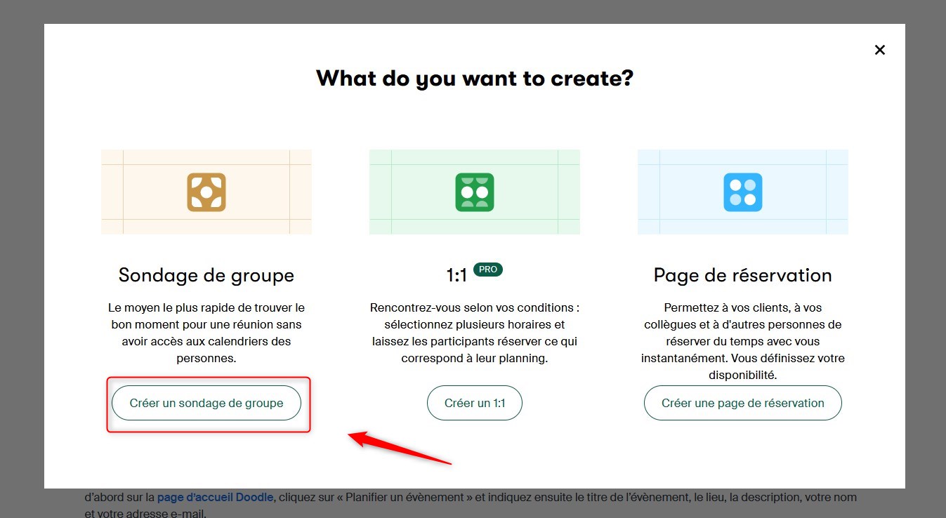 - Entrer cette adresse dans le fureteur Web : https://doodle.com/fr/sondage-en-ligne ;