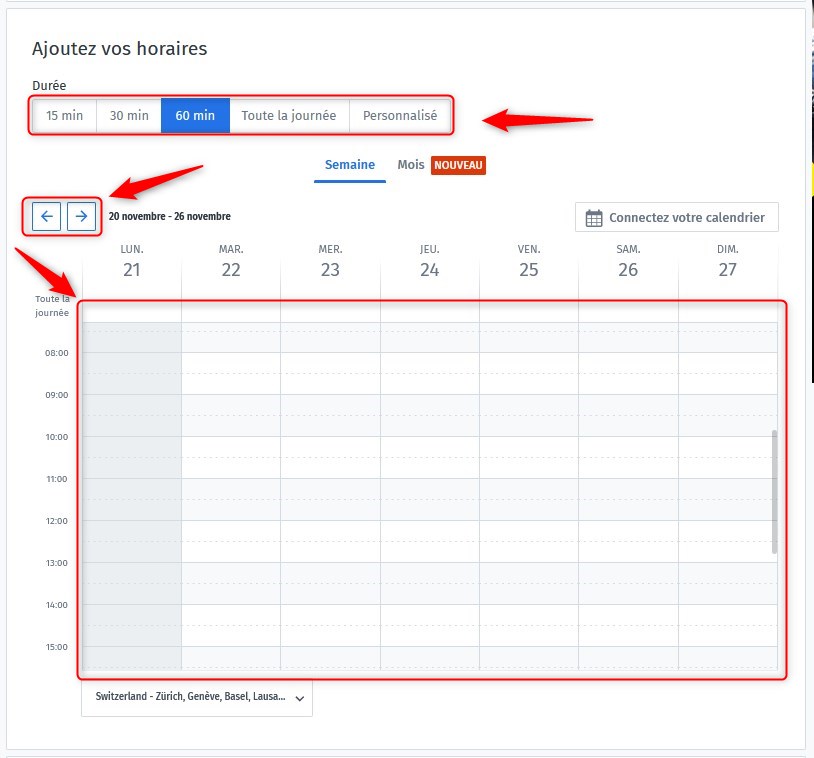 – Dans le calendrier apparaissant sous la première fiche, Sélectionner la durée,