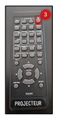 - Ouvrir le projecteur en appuyant sur le bouton rouge de la télécommande dans le meuble;