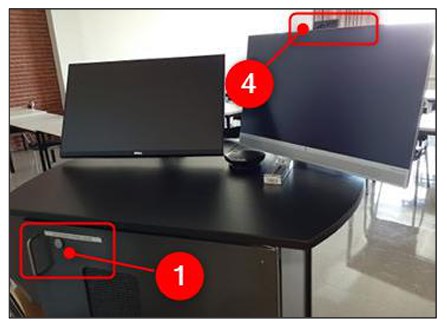 - Dans une des salles de classe de l’UQAC, débarrer le meuble audiovisuel (avec la clé #101) pour avoir accès à l’ordinateur;