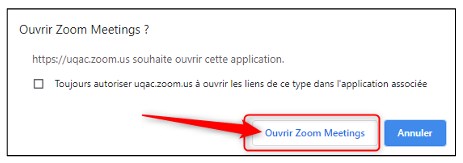 « Ouvrir Zoom Meetings »: