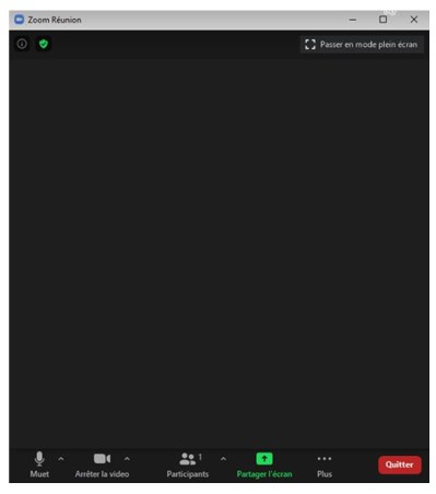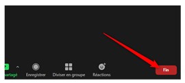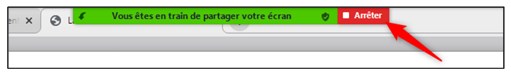 - Pour mettre fin au partage d’écran, il suffit de cliquer sur le bouton rouge « Arrêter » qui figure dans le haut de l’écran :