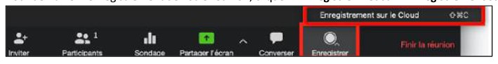 D. Pour enregistrer votre cours - Pour démarrer l’enregistrement de votre réunion, cliquer « Enregistrer » et sur « Enregistrement sur le Cloud »;