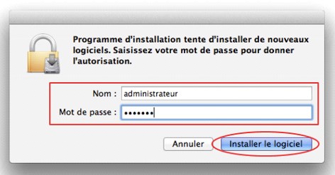 Autoriser l’installation du client VPN sur votre ordinateur en remplissant les champs Nom et Mot de votre ordinateur, puis cliquer sur le bouton Installer le logiciel