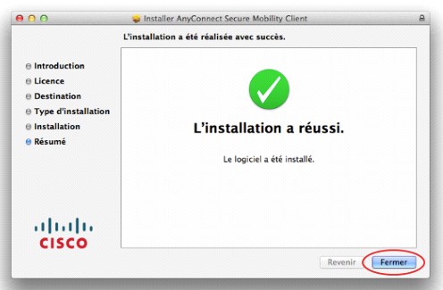 Lorsque l’installation est terminée, cliquer sur le bouton Fermer.