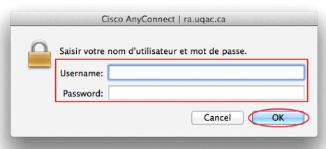 Entrer votre NOM D’UTILISATEUR et votre MOT DE PASSE et cliquer ensuite sur le bouton OK.