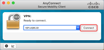 Inscrire vpn.uqac.ca dans le champ de saisie et cliquer ensuite sur Connect