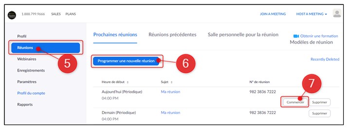 6. Vous pourrez, si vous le souhaitez, programmer une nouvelle réunion en cliquant sur le bouton « Programmer une nouvelle réunion »;