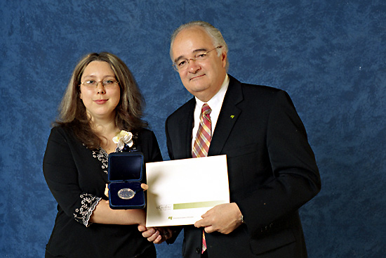La médaille d’argent du Gouverneur général a été décernée à Mme Anne-Marie Houle. Cette haute distinction couronne trois années d’excellence et de dépassement dans la poursuite d’un projet menant à l’obtention du baccalauréat en psychologie. Cette médaille constitue une reconnaissance dont cette étudiante peut tirer une très grande fierté. Ceci témoigne d’une conscience élevée dédiée à la poursuite de son objectif: entreprendre des études doctorales en psychologie.