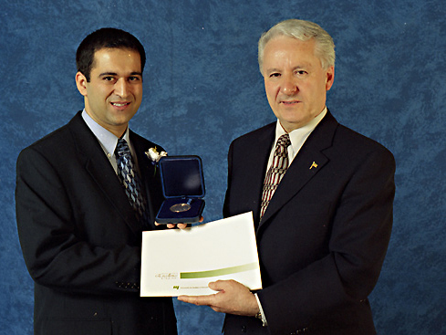 La médaille d’or du Gouverneur général a été décernée à M. Changiz Tavakoli Zaniani. Il a quitté l’Iran pour se retrouver à Chicoutimi, où il a poursuivi un parcours exemplaire d’études aux cycles supérieurs. Loin de son pays, de sa famille et dans un univers culturel auquel il devait s’adapter, il a su rencontrer les défis et se tailler une place dans la communauté.
