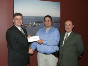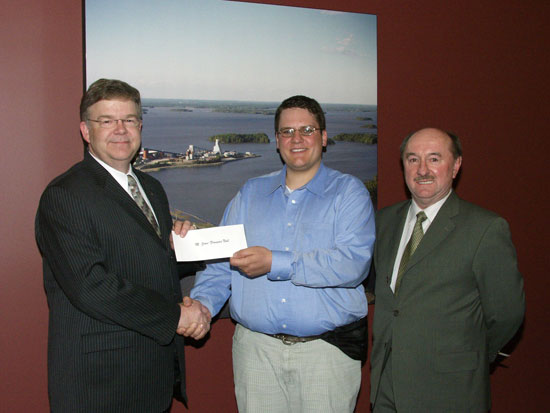 M. Jean-François Noël, étudiant au baccalauréat en génie géologique, quatrième année, reçoit une bourse des mains du ministre des Ressources naturelles du Québec, Pierre Corbeil, accompagné du président-directeur général de l'Association minière du Québec, Dan Tolgyesi.M. Jean-François Noël a été honoré dans le cadre du programme de bourses d’études universitaires de l’industrie minière du Québec pour l’année 2004-2005. En effet, le comité de sélection lui a décerné en avril dernier une bourse de 1 000 $ pour la qualité de son dossier académique, son projet de carrière et son implication dans le milieu. À souligner, Jean-François Noël, étudiant au baccalauréat en génie géologique à l’UQAC, fait partie des trois récipiendaires récompensés par ce programme à l’échelle québécoise.