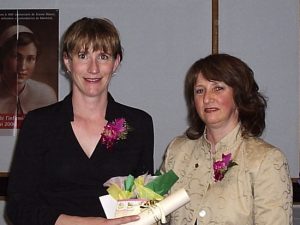 Madame Hélène Boulianne, présidente de l'Ordre des infirmières et infirmiers du Saguenay–Lac-Saint-Jean/Nord-du-Québec, a félicité la professeure Maud-Christine Chouinard pour son travail exceptionnel qui contribue à l'avancement de la discipline infirmière. Félicitations!L’Ordre des infirmières et infirmiers du Saguenay–Lac-Saint-Jean/Nord-du-Québec a souligné, le 10 mai dernier, lors de sa Soirée reconnaissance, le travail exceptionnel de douze infirmières de la région. Parmi celles-ci, Madame Maud-Christine Chouinard, professeure au Module des sciences infirmières et de la santé et responsable des programmes d’études de cycles supérieurs en sciences infirmières, a reçu ce témoignage de reconnaissance. À cette occasion, l’insigne de l’Ordre provincial des infirmières et infirmiers lui a également été offert.