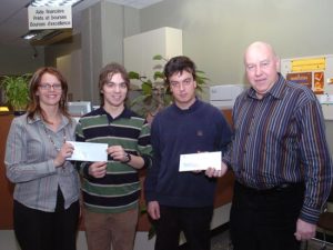 Madame Aglaé Gaudreault, Service des Finances, monsieur Benoît Ouellet, inscrit au Baccalauréat interdisciplinaire en arts, monsieur Simon Brunette, inscrit au Baccalauréat en ingénierie, monsieur Gervais Tremblay, Services aux Étudiants.