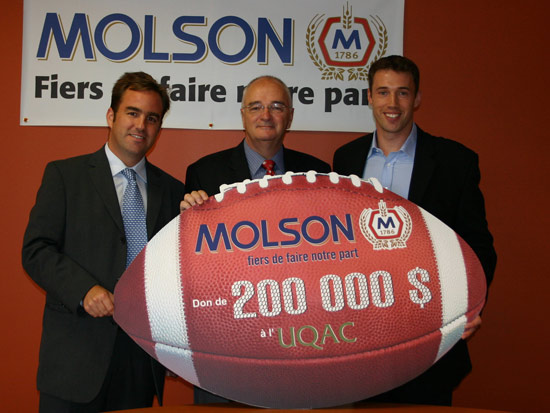 L’Université du Québec à Chicoutimi a reçu un don de 200 000 $ de la brasserie Molson, non récurrent, destiné à l’amélioration des infrastructures et activités sportives de l’institution. Une partie de cette somme servira à la création d’une bourse qui récompensera l’excellence sportive et « académique » des étudiants-athlètes.