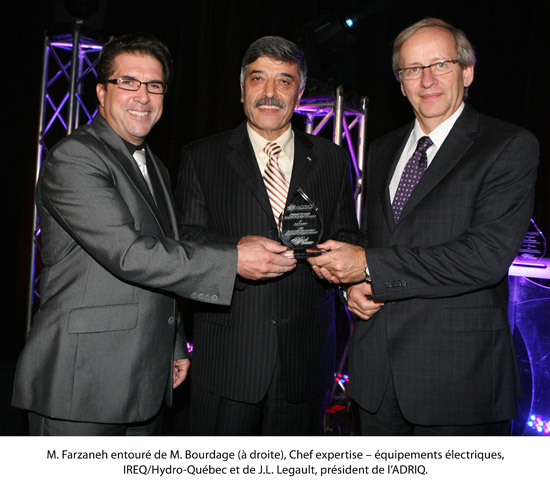 L’Association de la recherche industrielle du Québec (ADRIQ), conjointement avec le Conseil de recherches en sciences naturelles et en génie du Canada (CRSNG), a remis au professeur Masoud Farzaneh un prix d’excellence, en reconnaissance du partenariat exemplaire et fructueux établi avec Hydro-Québec. Cette distinction lui a été décernée lors de la soirée « Célébrons le partenariat » à Montréal, le 23 septembre dernier, devant des dirigeants de l’industrie et du monde de l’éducation.