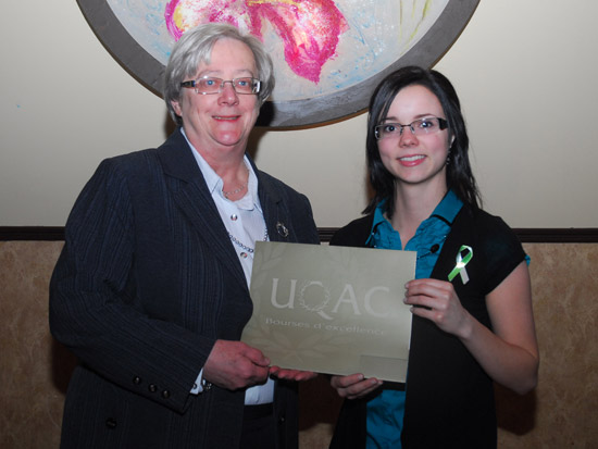 Madame Francine Belle-Isle, vice-recteur à l’enseignement et à la recherche, a procédé à la remise des médailles du gouverneur général du Canada. La médaille d’argent, qui récompense les efforts du meilleur étudiant au premier cycle, a été décernée à MÉLANIE GOBEIL-SYLVAIN du baccalauréat en sciences comptables. La médaille d’or a été attribuée à BENJAMIN SCHAFF, étudiant à la maîtrise en informatique. Les lauréats ont été choisis parmi les étudiants qui ont maintenu les meilleures moyennes cumulatives dans leur programme d’études à l’Université.