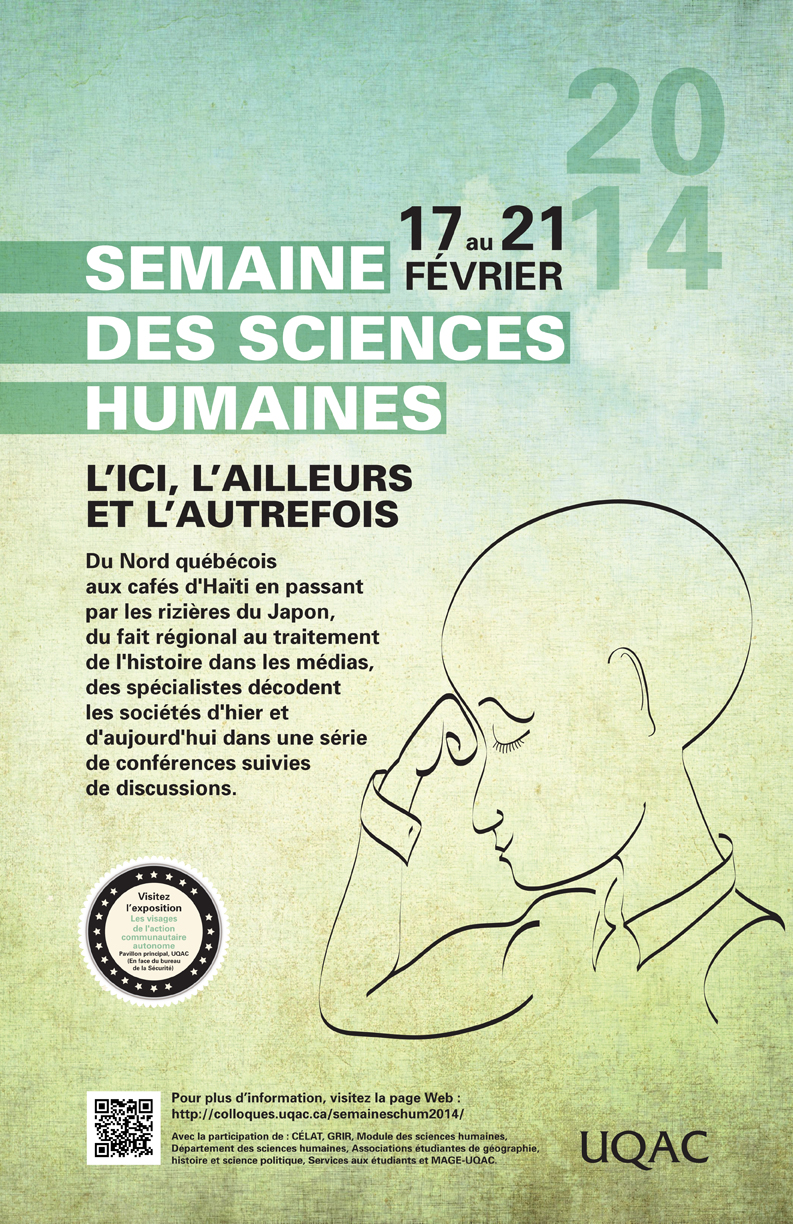 Le Module des sciences humaines de l’UQAC invite la communauté universitaire à assister gratuitement aux conférences et activités présentées dans le cadre de la Semaine des sciences humaines 2014 :