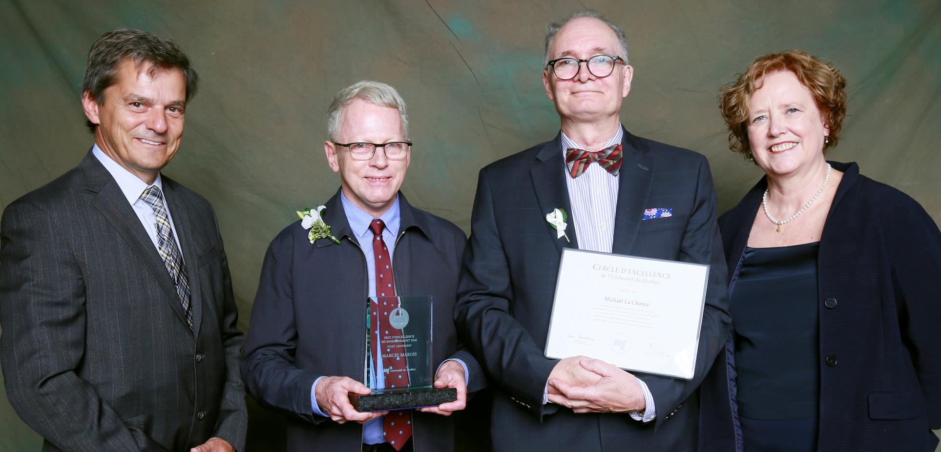 Michaël La Chance, quant à lui, a été désigné par les chefs d’établissement, lors de la Rencontre des dirigeants de l’UQ qui s’est tenue le 31 août dernier, comme membre du Cercle de l’excellence de l’Université du Québec. Les recteurs et les directeurs généraux soulignent ainsi l’apport exceptionnel d’un de leurs membres, qu’il soit professeur, chercheur, gestionnaire ou un autre membre du personnel. Cette année, dix membres du réseau sont nommés au Cercle d’excellence de l’Université du Québec.