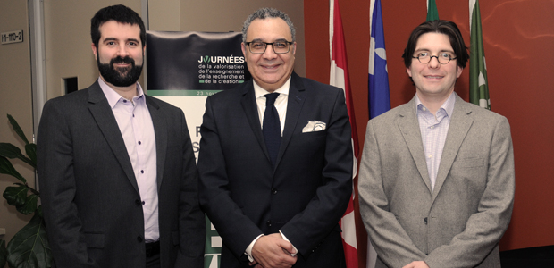 Deux enseignants de l’UQAC ont été récompensés pour l’excellence de leurs pratiques en matière de pédagogie universitaire ainsi que pour leur implication dans le milieu. Olivier Riffon, chargé de cours au Département des sciences fondamentales, et Sylvain Hallé, professeur au Département d’informatique et de mathématique, se sont tous deux vu remettre le Prix de l’enseignement à l’occasion de la cérémonie de clôture des Journées de la valorisation de l’enseignement, de la recherche et de la création, tenue le mercredi 23 novembre dernier.