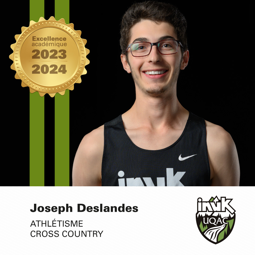 Chaque année, le programme de sport universitaire de l’UQAC souligne le succès scolaire de ses étudiantes et étudiants athlètes en attribuant des mentions d’excellence académique. Cette distinction, qui se veut un gage de reconnaissance de leur persévérance scolaire et de leurs réalisations sportives, est remise aux athlètes ayant maintenu une moyenne académique de 80 % au cours de la plus récente année universitaire et ayant obtenu de leur entraîneur une recommandation positive attestant de leur participation significative aux activités de l’équipe.