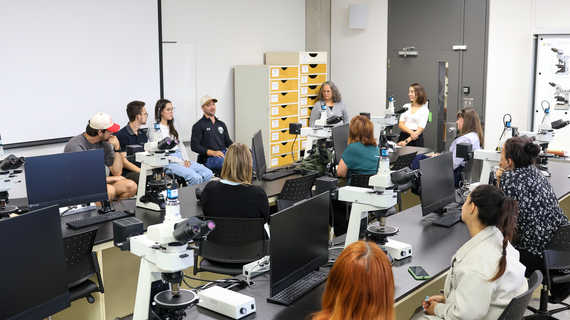 De même, un autre domaine qui a été mis en lumière est celui des sciences de la Terre. Campée dans le laboratoire de microscopie, la présentation des baccalauréats en géologie et génie géologique a été remarquée. Renée-Luce Simard, directrice de l’unité d’enseignement, accompagnée de quatre personnes étudiantes, ont saisi l’opportunité pour illustrer l’évolution de la profession au fil des années. Questionnés sur leurs stages et ce qui a le plus suscité leur intérêt durant leur cheminement, chacun des étudiantes et étudiants présents ont partagé des réponses différentes les unes des autres, permettant de mieux comprendre les voies de sortie à l’issue du programme.