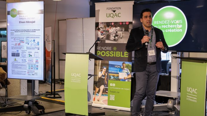 Sur la photo : Le récipiendaire du premier Prix du jury de la catégorie « Doctorat », Ehsan Niknejad, étudiant au doctorat en ingénierie