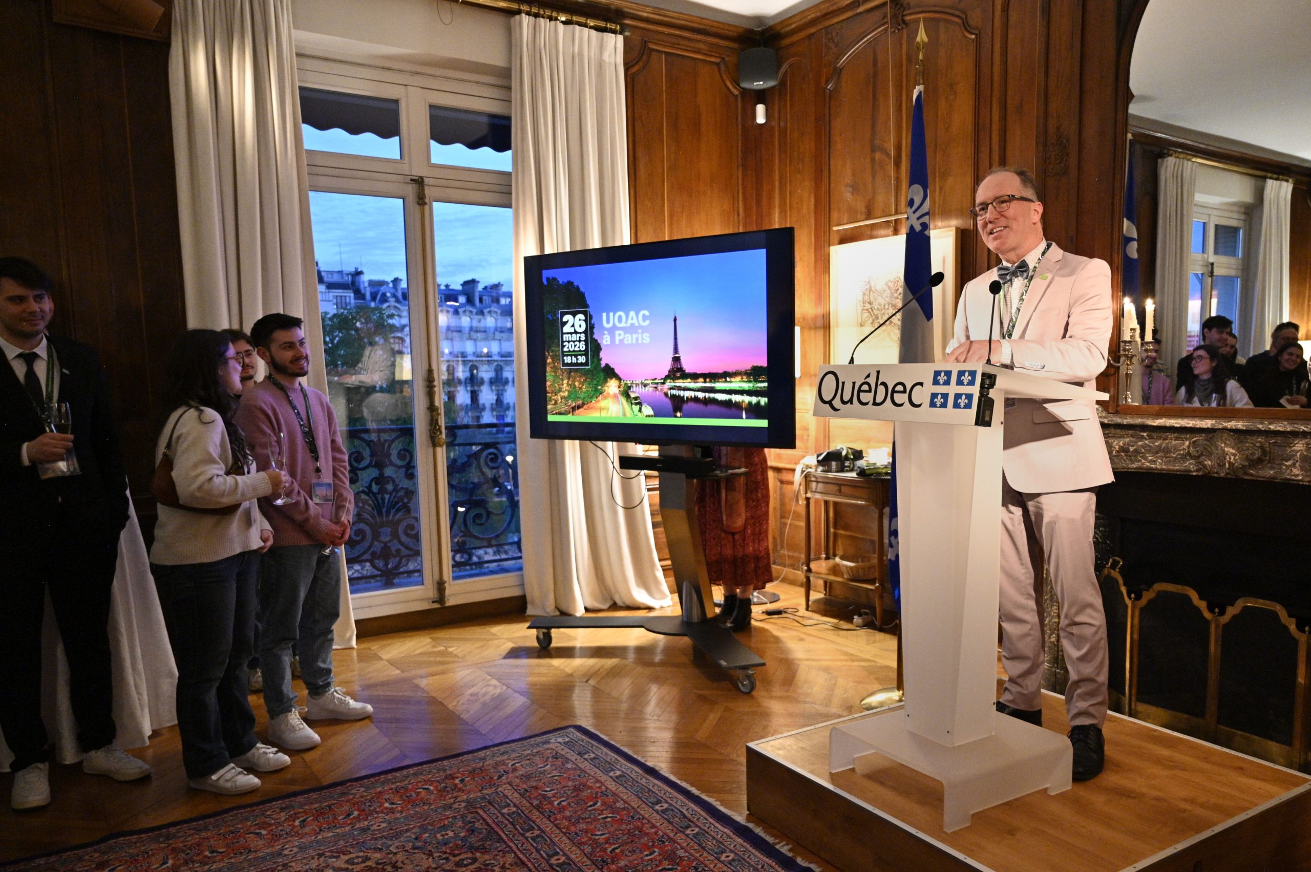 « Votre présence témoigne de l’attachement durable que vous portez à votre alma mater. Par vos parcours, vos réalisations et votre engagement, vous contribuez à faire rayonner l’UQAC ici en France comme ailleurs dans le monde », a-t-il mentionné.